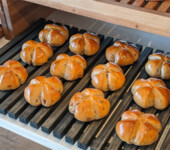 より多くのお客様に焼きたてを楽しんで頂けるよう、毎日、小さなオーブンで何回も何回もパンを焼いていきます。
